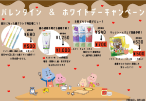 2/14(土)~3/14(土)まで対象の商品がお得にお買い求めいただけるキャンペーンを実施中です。